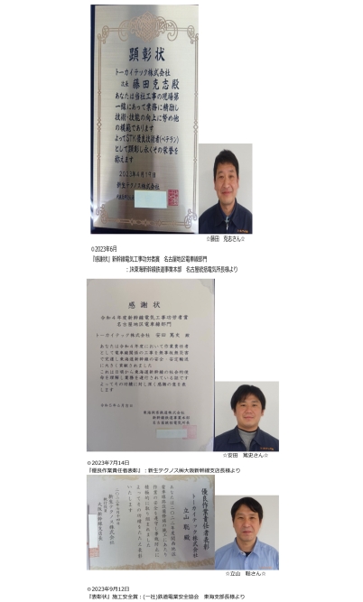 2023年度各種表彰 2024.03.31 NEWS 2023年度内の主な個人表彰…おめでとうございます! ◎2023年4月19日 『顕彰状』STK優良技術者(ベテラン):新生テクノス㈱代表取締役社長様より