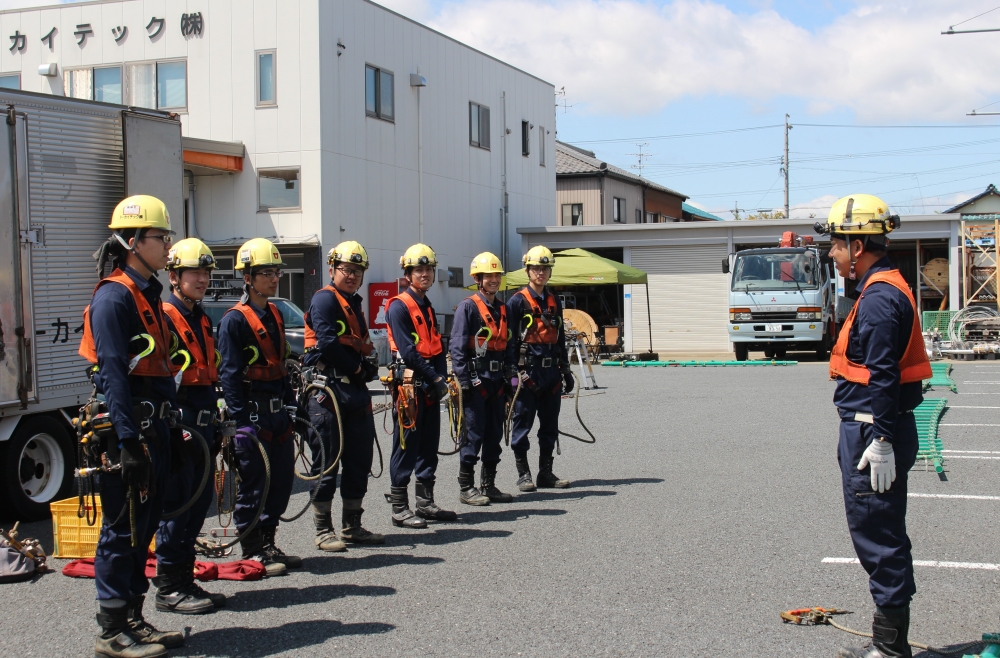 ↑若手メンバー交代しての訓練です。↑整列して、ベテラン社員から作業指示を聞く若手社員
