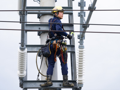 そんな世界に誇る新幹線を影から支えているのが私たちトーカイテック。線路の上空にある電線や電柱のメンテナンス・改良工事を行なっています。新幹線の動力たる電気が安定して供給される状態を保つことが私たちの使命です。電気工事の実作業、施工管理、工事設計など幅広い業務に従事しており、高い技術力を保有。実際に台湾の高速鉄道建設においては、当社の社員が現地での技術指導を実施しています。